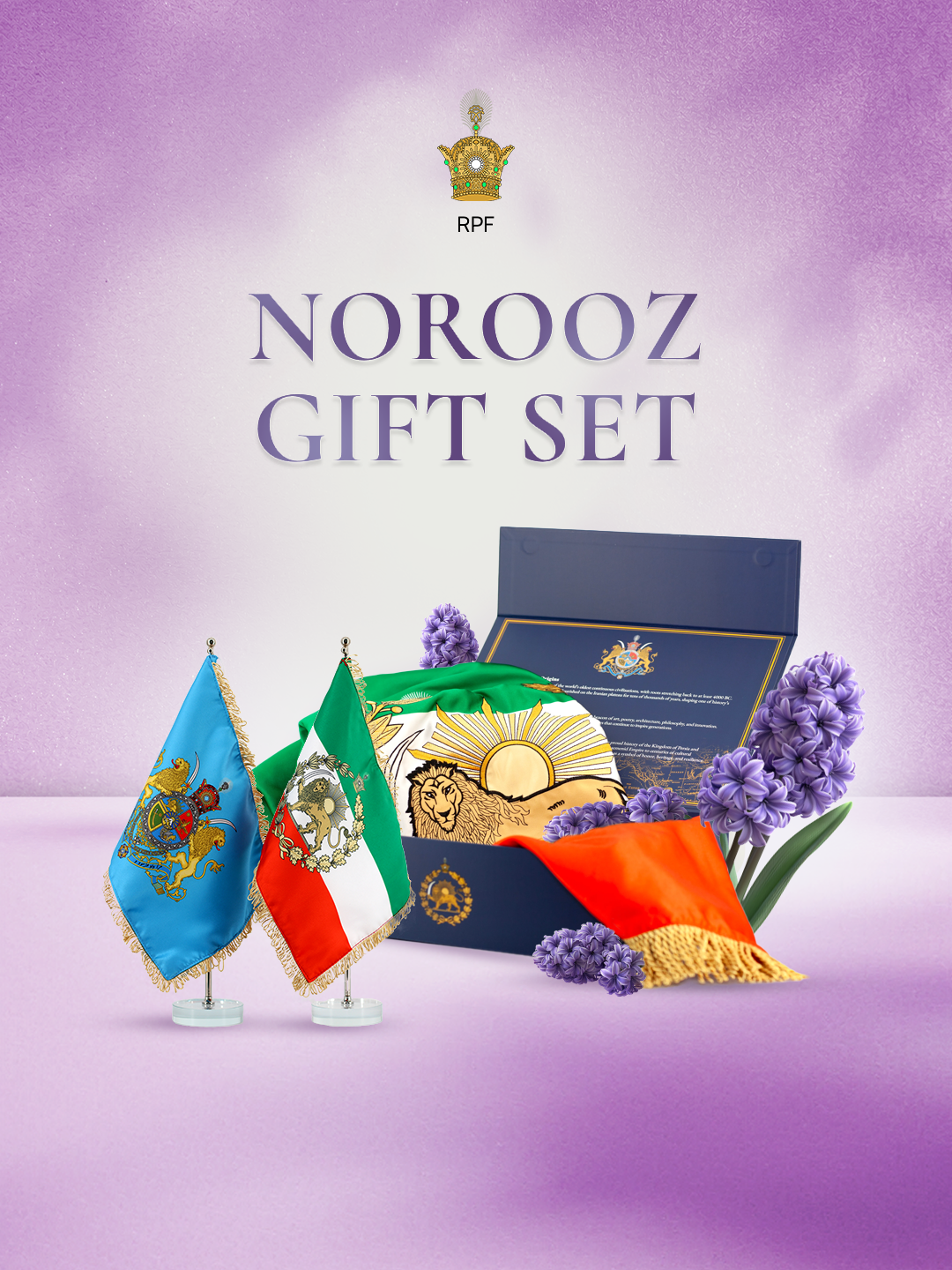 Norooz Gift Set - Lion and Sun Flags along with Blue Standard of Shahanshah